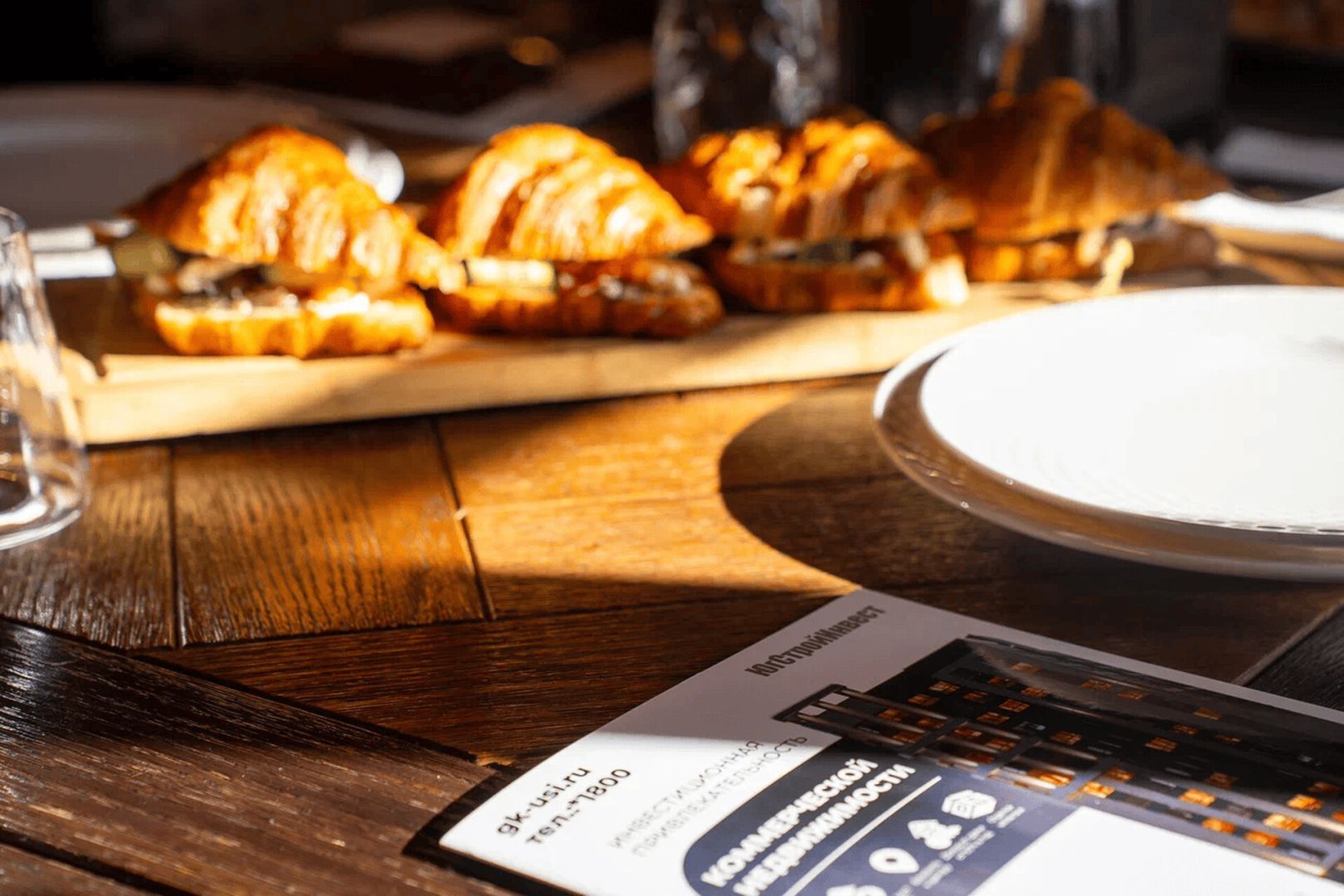 Не обошлось и без трапезы: для гостей приготовили разнообразные блюда, включая круассаны с красной рыбой, сырники, медовик, а также сырное и мясное плато.