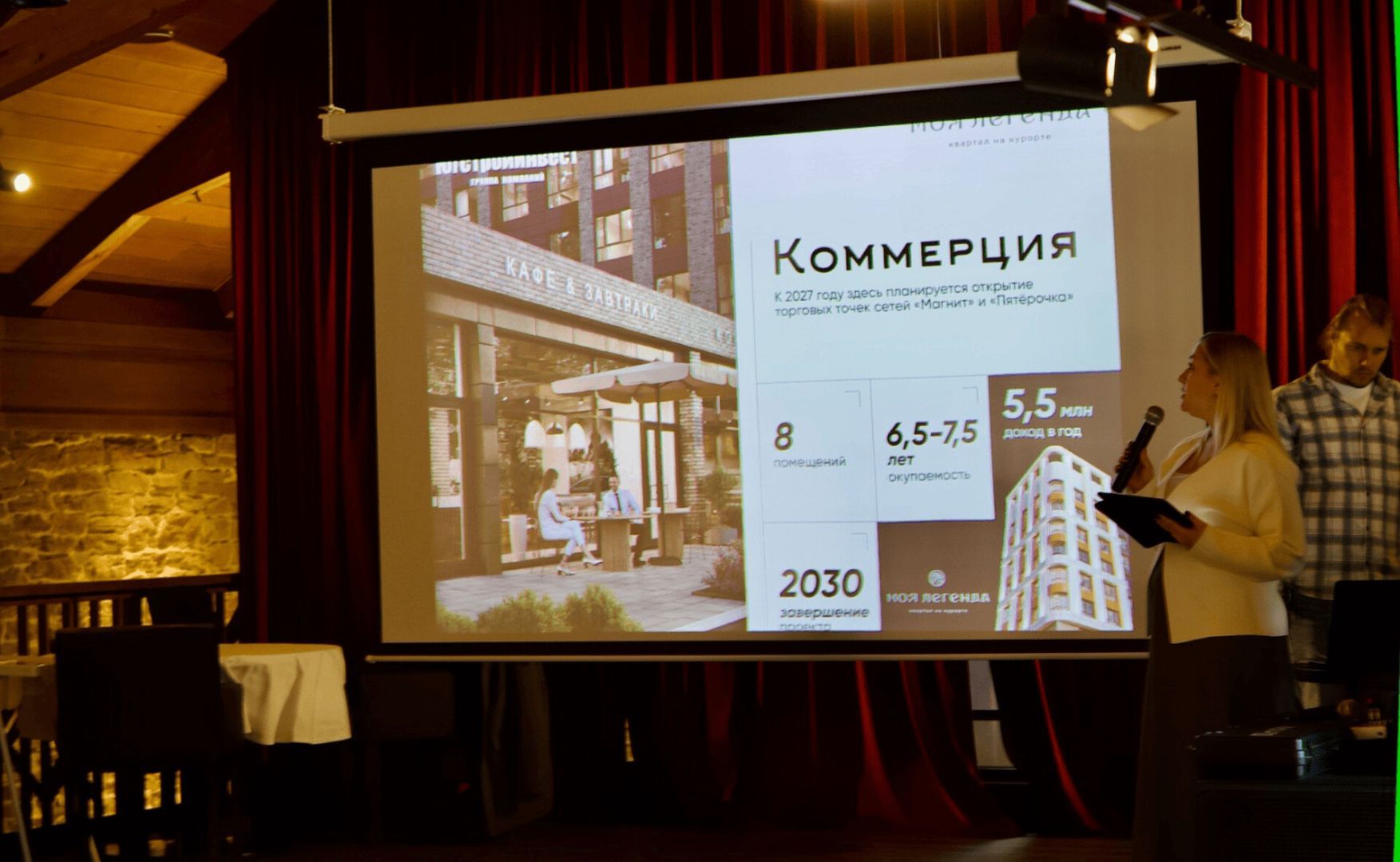 Руководитель отдела продаж на КМВ Антонина Андоренко подробно рассказала гостям о развитии коммерческой инфраструктуры в Кисловодске. Она представила три крупных проекта компании: квартал на курорте «Моя Легенда», дом у озера «Моне» и клубный квартал «Печорин». Участники узнали, какие возможности открываются для бизнеса в этих локациях, где сосредоточены наиболее перспективные коммерческие площади и каким образом их можно использовать для развития собственных проектов.